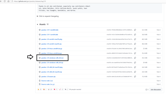 - Ve a la página oficial de descargas de Pandoc.