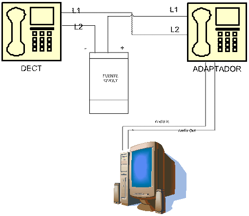 Para realzar nuestro adaptador ,en un lado del puente conectaríamos nuestro viejo teléfono en el que nos bastaría reemplazar las conexiones de audio (micro y auricular) del microteléfono por dos conexiones con jacks hacia nuestra tarjeta de salida y en el otro lado del puente conectariamos nuestro teléfono DECT (o cualquier teléfono a ser posible inalámbrico).