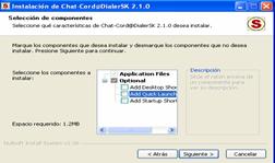 En esta pantalla eliminaremos el check de activo en las opciones “Add desktop Shortcut”, en la opción “ad startup shotcut” y en “Add Quick Launch” (es decir eliminaremos todas las opciones de la rama “optional”