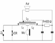 La señal que viene por la línea recorre L1, que induce una corriente igual en L2, de modo que por el micrófono no circula señal. Sin embargo, tanto L1 como L2 inducen en L3la corriente que se lleva al auricular.