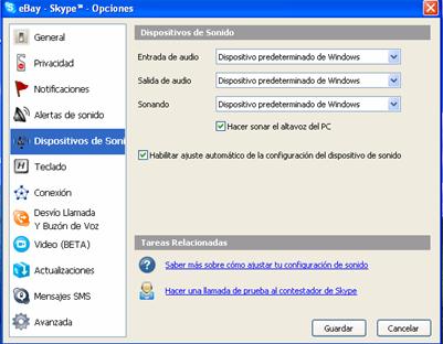 Por ultimo como colofón dos aspectos que nos pueden ayudar en el uso diario del adaptador con el programa Skype , son por un lado el activar el ajuste automático de configuración del dispositivo de sonido para obtener la máxima calidad de audio ( en OpcionesàDispositivos de Sonidoàcasilla “Activar ajuste automático de la configuración de sonido” )y por otro el activar sonar el altavoz del PC ( en OpcionesàDispositivos de Sonidoàcasilla “Hacer sonar el altavoz del PC”) , de modo que por si accidentalmente no enchufamos nuestros altavoces al menos oiremos el zumbido del altavoz interno de nuestro PC.