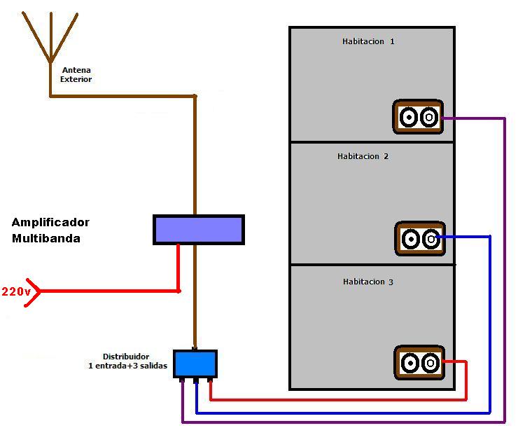 Efectivamente la existe, pues en la mayoría de las viviendas (ya sea una vivienda individual o un edificio de varias viviendas) existe una distribución de antena bastante normalizada que por lo general se apoya bien en un amplificador multibanda ( en el caso de una única vivienda) o en varios amplificadores dedicados(en el caso de una instalación colectiva) y desde la salida de estos, apoyándose en tantos distribuidores como sea necesario, se llega hasta cada vivienda y allí nuevamente se montaran tantos distribuidores como se precisen para cubrir las habitaciones necesarias.