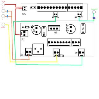 Como ultima nota importante, cabe destacar, que si no disponemos de cableado interior de antena, el resultado no es satisfactorio si conectamos el activo de la salida de RF a la citada toma de antena, o simplemente no nos atrevemos a realizar la conexión directa, dada la gran potencia de salida del MCA, se puede utilizar este montaje en «modo antena exterior».