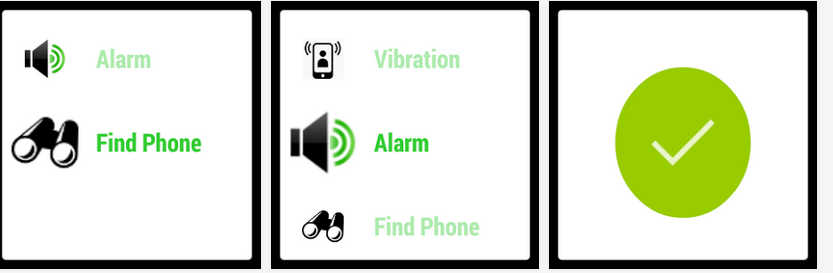 1) Un recordatorio que se le olvidó el teléfono si lo deja (el reloj mostrará la señal de mensaje y la vibración, y el teléfono reproducirá la música).