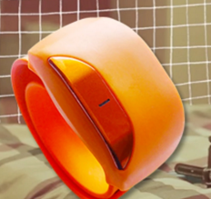 Se trata de una pulsera de silicona creada por un grupo de emprendedores japoneses en kickstarter que se presenta con este lema: “ Todo lo que hagas se convierte en un juguete”. ¿Cómo? La pulsera recoge los movimientos del niño y se conecta por Bluetooth a una ‘app’ instalada en el teléfono de sus padres, ofreciendo sonidos en función de las acciones que se realicen.De esta forma, si el menor juega a que tiene una espada o toca la guitarra, esos son los sonidos que se reproducirán cada vez que mueva sus manos.Es pues una especie de juguete portátil inteligente que prodeuce sonidos divertidos por cada movimiento del niño.Incluso Moff juega bien con otros – dos Bandas Moff pueden sincronizar a nuestro Moff aplicación