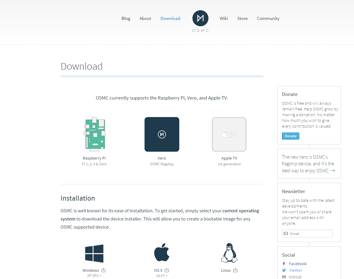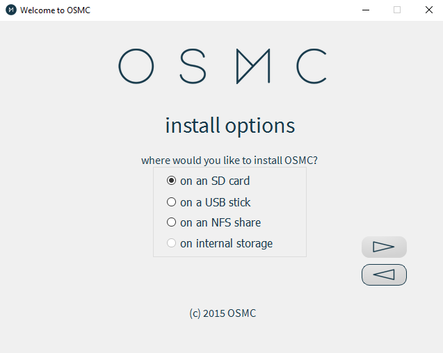 OSMC es bien conocido por su facilidad de instalación . Para empezar , sólo tiene que seleccionar el sistema operativo actual para descargar el instalador dispositivo,lo cual le permitirá directamente crear una imagen de arranque para cualquier OSMC dispositivo compatible.