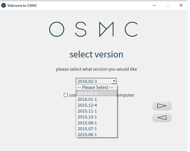 Ahora tendrá que seleccionar la versión de OSMC ,para lo cual lo recomendable es elegir la ultima versión disponible ( en el menú es la primer opción)
