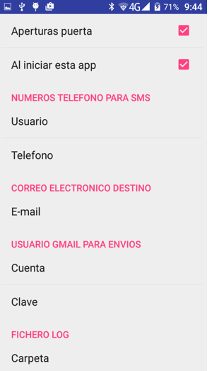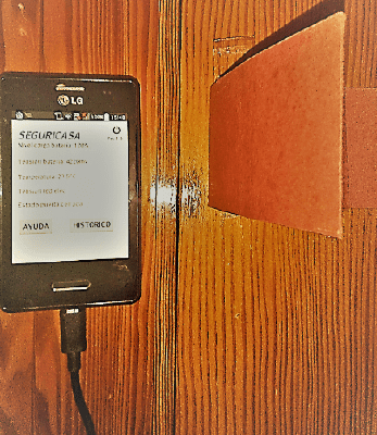 En el caso de que se desee también monitorizar los accesos, tampoco se necesita ningún hardware especial: simplemente tendrá que fijar su viejo Smartphone cerca de la puerta de acceso mediante un velcro o similar , y colocar un soporte solidario a la puerta que pueda cubrir aproximadamente al menos 1cm la parte superior del Smartphone, para que en cuanto abramos la puerta automáticamente oculte el sensor y de esta forma ser envíen según se defina, notificaciones por SMS o por mail de cualquier acceso ( obviamente si ha definido el número del teléfono y las cuentas de correo de origen y de destino dentro de la propia aplicación).
