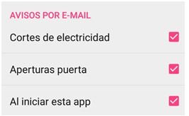 Los avisos por e-mail en esta aplicación son personalizables mediante esta sección:
