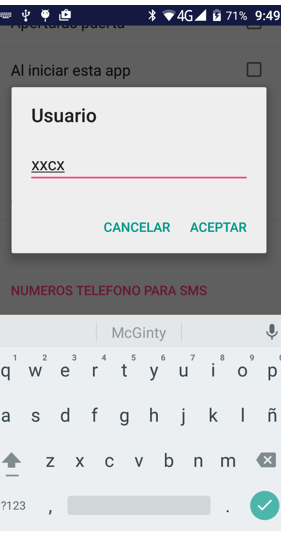 Es interesante destacar que si no informamos del número de teléfono destinatario de los SMS ‘s y clicamos alguna opción de SMS, nos saltara un error de número no definido.Si introducimos el numero o el nombre de usuario en esta sección, para volver a la pantalla principal, pulsar el botón volver del terminal o simplemente pulsa el botón cerrar de esta pantalla.