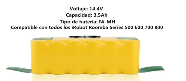 La batería es compatible con los modelos iRobot Roomba 500, 600, 700 y 800 de la serie 500 505 510 520 521 530 531 532 533 534 535 536 540 545 550 552 555 560 561 562 563 564 565 570 580 581 585 587 589 595 600 605 610 615 616 620 621 625 630 631 632 639 650 651 660 670 680 681 700 720 750 760 765 770 772 772e 774 775 776 776 776p 780 782 782e 785 786 786p 800 850 860 865 866 870 871 875 876 880 886 890 R3 80501 4419696 Scooba 450