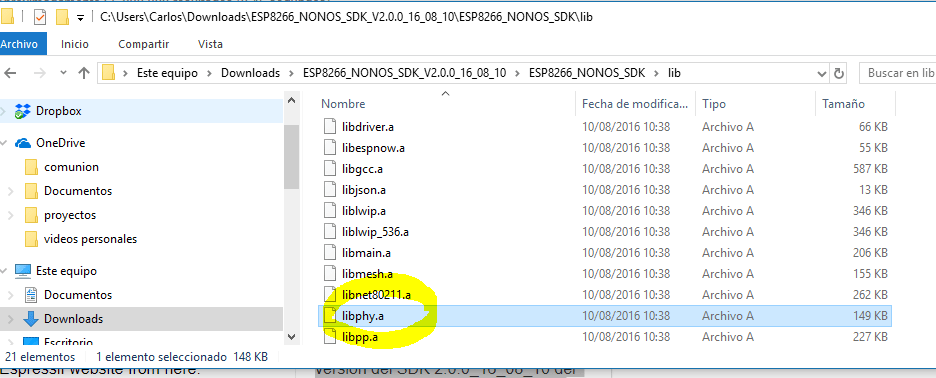 Descomprima el fichero ESP8266_NONOS_SDK_V2.0.0_16_08_10.zip