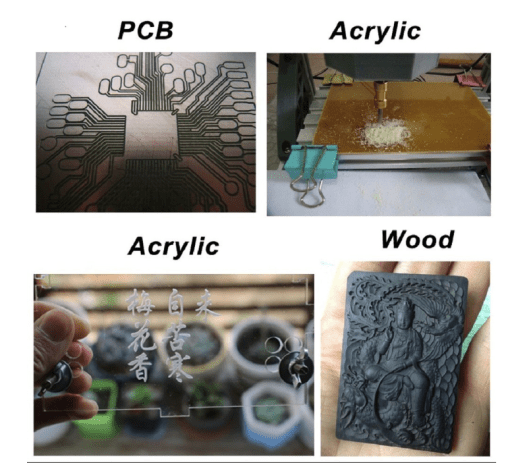Estas maquinas conocidas como router CNC o simplemente CNC en efecto son adecuadas para tallar madera, acrílico o metal blando, madera nativa, PCB CCL, PVC y un largo etcétera lo cual permite infinidad de aplicaciones para los profesionales y también para los aficionados al bricolaje y a la electrónica dado que su precio así como también su tamaño han hecho que estén accesibles a casi todos los bolsillos .
