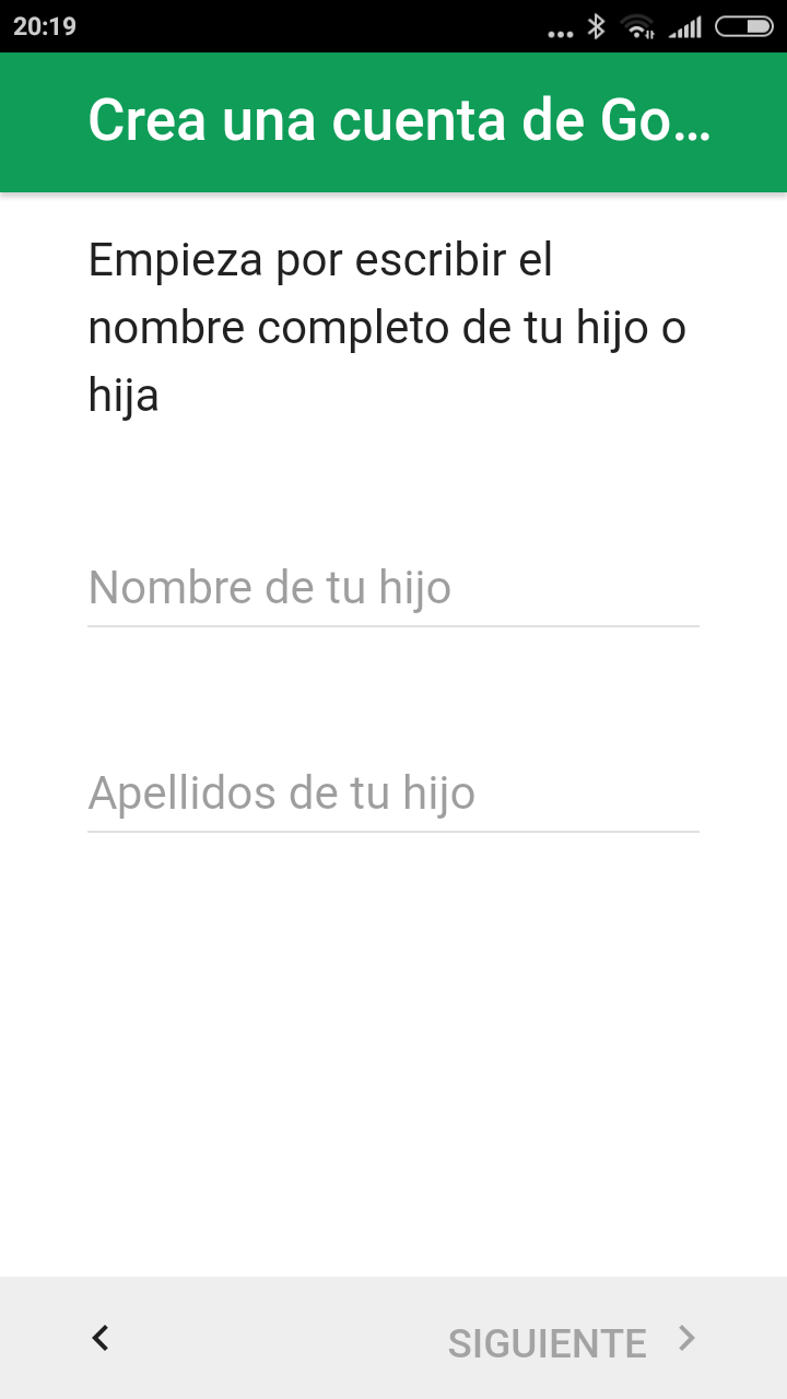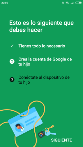 Ahora   ya lo siguientes  toca crear la cuenta del menor por  lo que tendremos que darle nuevamente a siguiente