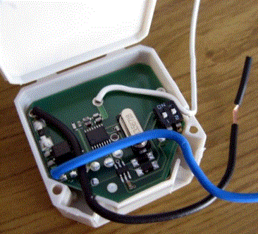 Bien, si la solución que vamos a instalar es para un portero automático usaremos el pequeño emisor Dinuy EM HEB 004 que como hemos comentado arranca con una tensión DC comprendida entre 8 y 24V , Nuestro reto pues es introducir en el interior del emisor del portero automático de la vivienda ( normalmente situado dentro de la cocina) acomodando las dos únicas conexiones con las que cuenta F de color negro y N de color azul . El tercer hilo blanco obviamente no hay que conectar a ningun sitio pues es la antena exterior.