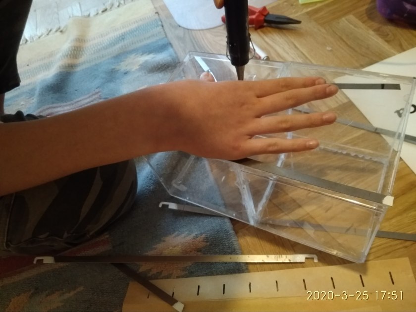 Para darle una mayor rigidez mecánica se pueden usar láminas de metal que pegaremos con cola caliente buscando la mayor rigidez posible