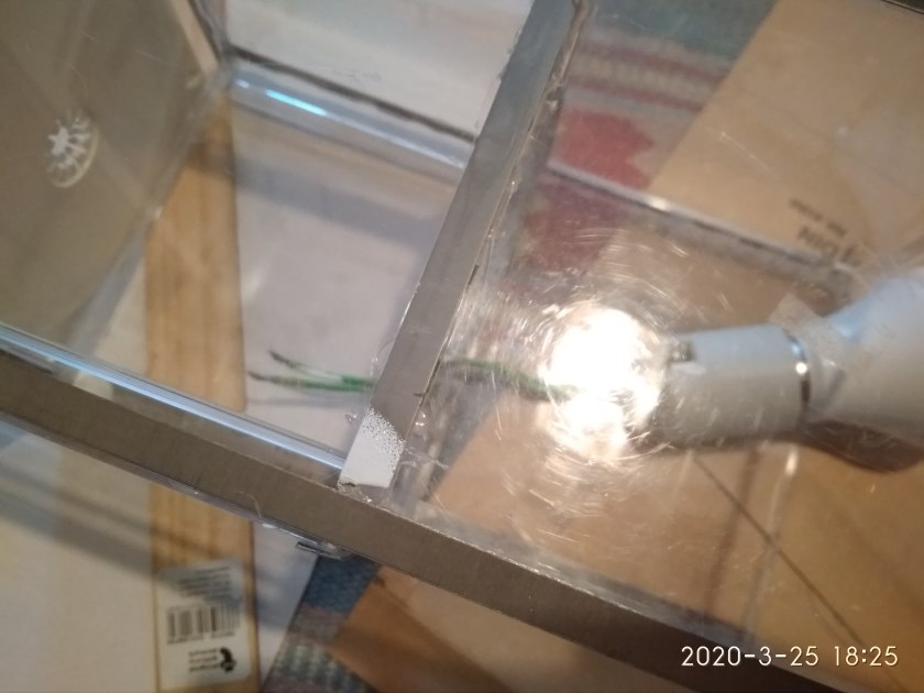 Por último para sujetar la lámpara al techo pegaremos un pequeño angulo metalica en forma de «u» que nos ayudara a colgar el techo la lampara .