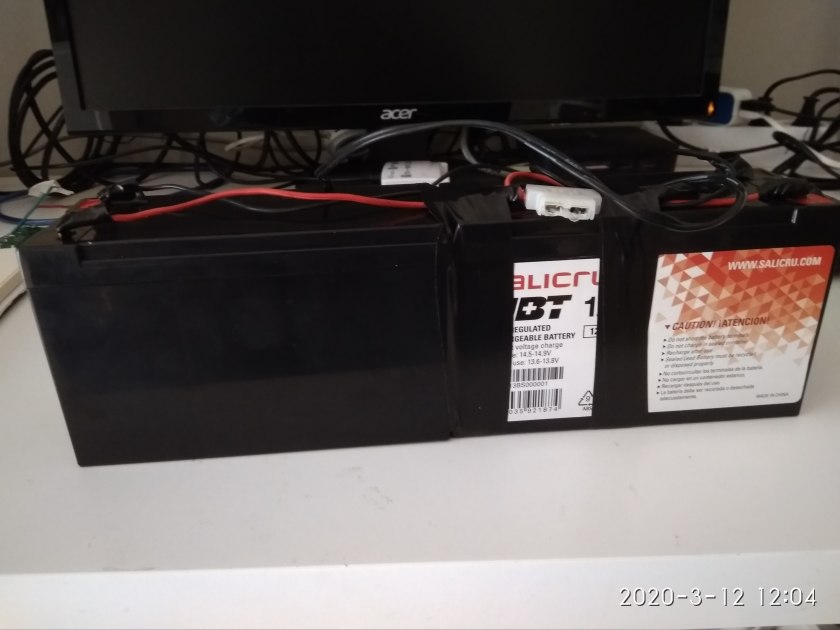 2-Colocaremos dos baterias en serie  de gel de 12v 7aH      de   modo que  las  conexiones  de ambas  baterías  queden  a un mismo lado