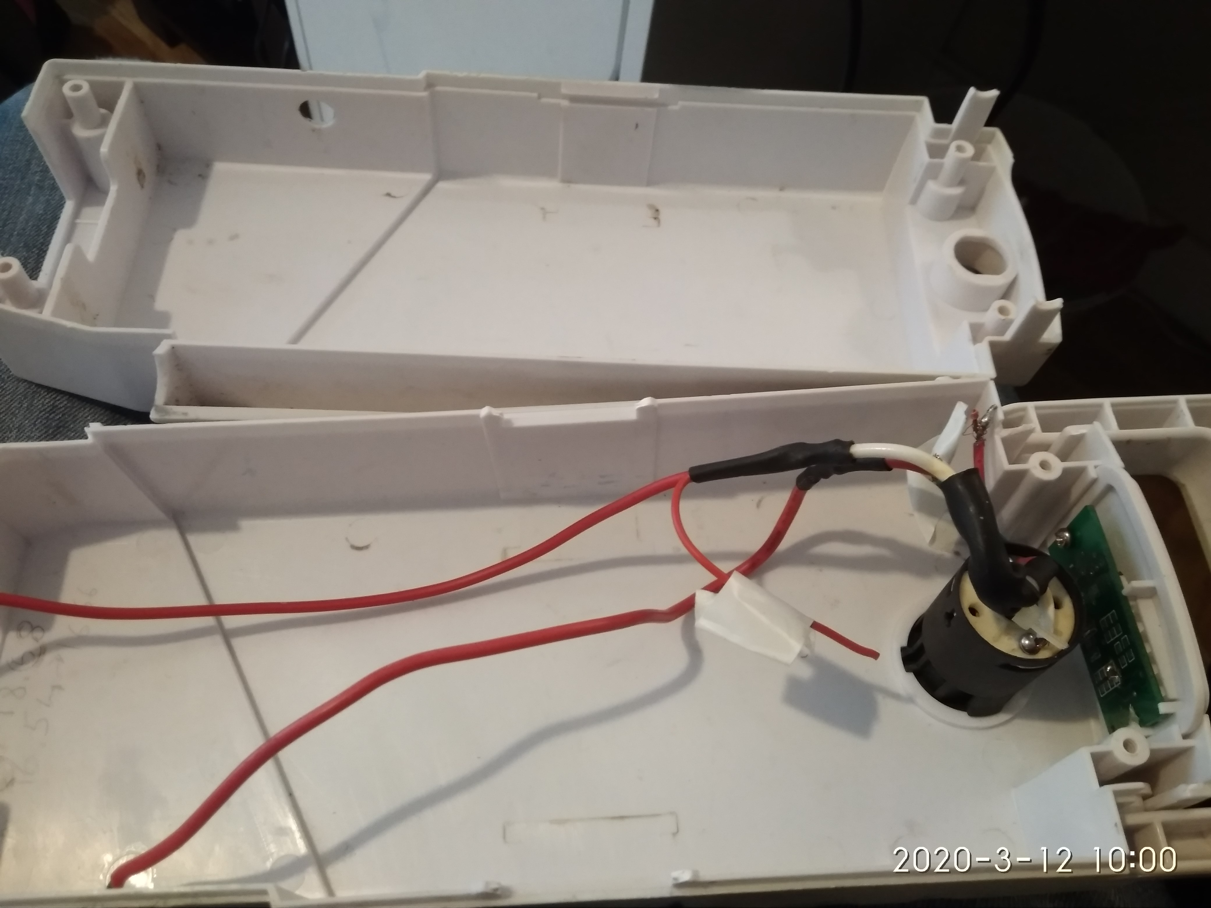 4-Finalmente conectaremos  en el polo +  de una batería   y el polo negativo a un conector  macho por ejemplo (reciclado de un alimentador de un viejo router de ADSL). Mucho cuidado de no confundir el polo positivo   y el polo negativo  a la hora de  soldar los hilos al conector.