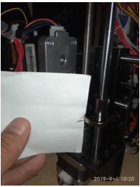 - Introducimos el folio entre la punta del extrusor y la base, y hacemos bajar el eje z hasta la altura del «home»(<Prepare-AutoHome> ) .