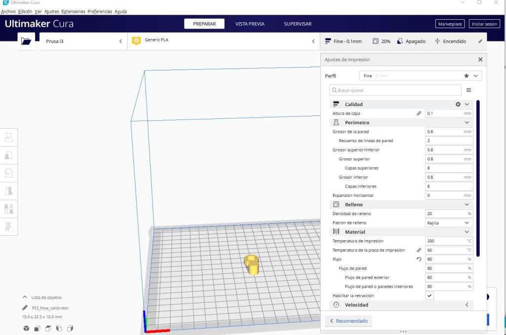 - Ajustaremos nuevamente el flujo y volveremos a imprimir la pieza