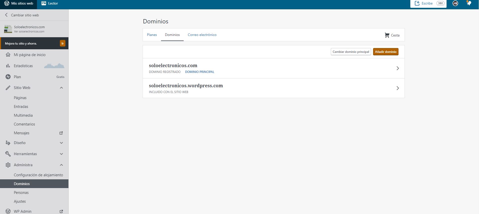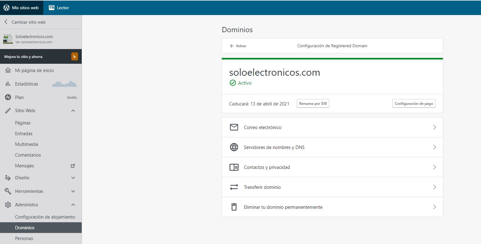 Un sitio de WordPress.com incluye una dirección gratuita por medio de  un subdominio de WordPress.com, como por ejemplo  misubdominio.wordpress.com  , pero puede  quitar la parte de “.wordpress.com” y usar directamente un nombre de dominio personalizado, como por ejemplo midominio.com, pero para ello  tendrá que pagar una mínima cantidad para que  precisamente ese nombre de dominio sea exclusivo en toda la red ( es decir tendrá que pagar la gestión del dominio  )