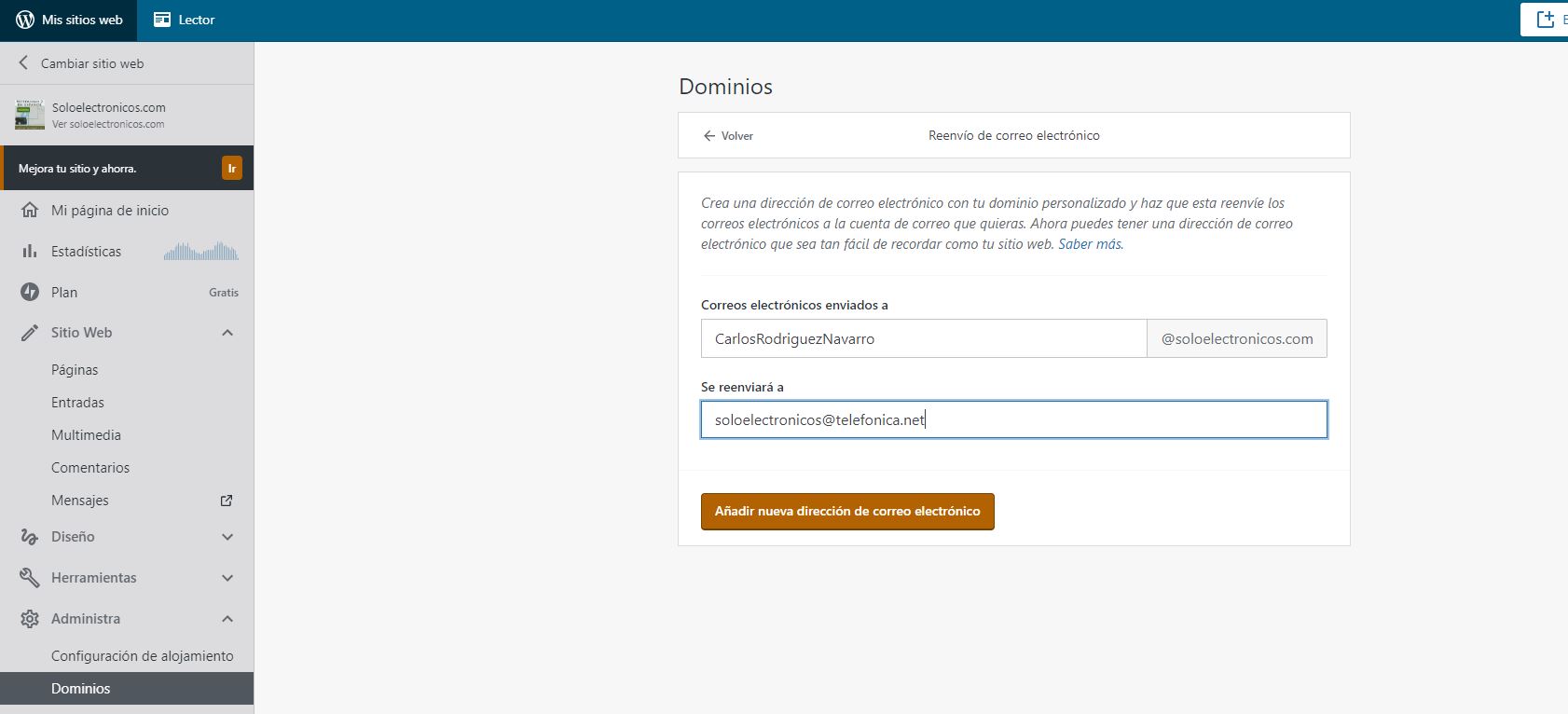 Tal y como hemos visto , si tenemos  un dominio   personalizado con  wordpress.com    podemos usar el reenvío de correo electrónico   permitiendo  usar su dominio personalizado en su dirección de correo electrónico habitual.