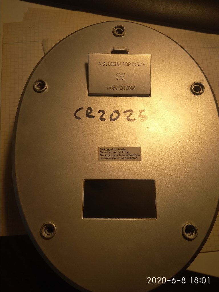Bien ,si cuenta con una balanza de hace algunos años , la «moda» era alimentarlas con baterías tipo botón de 3V, como por ejemplo el tipo CR2025, baterías que incluso siendo de litio (más caras)  no son fáciles de conseguir   siendo ademas de un precio ciertamente «poco amigable» comparándolas con las tipo AA o AAA , y ademas tienen un capacidad considerablemente mayor.