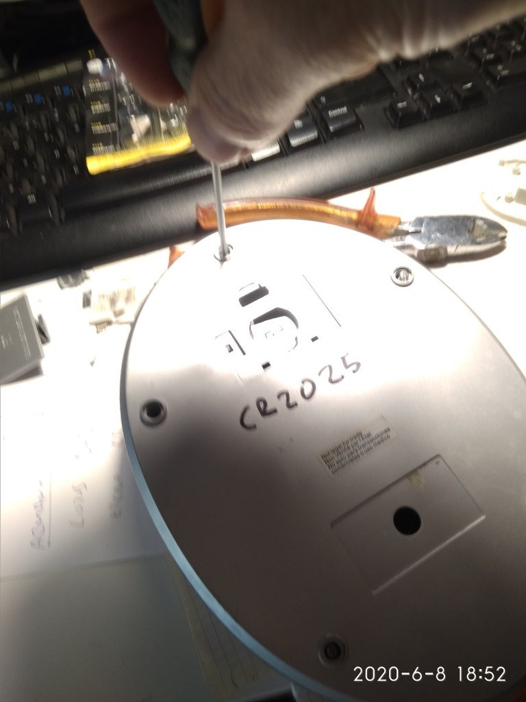 Como queremos cambiar el suministro de alimentación DC ,empezaremos creando un hueco para albergar 2 pilas en serie tipo AA o AAA  que sustituirán a la pila de botón (CR2025 o similares).