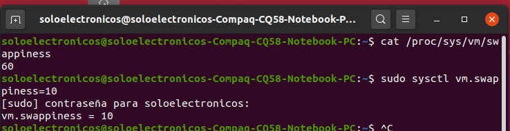 Ahora el valor de swappiness quedará en 10, y entonces la memoria virtual apenas se utilizará.