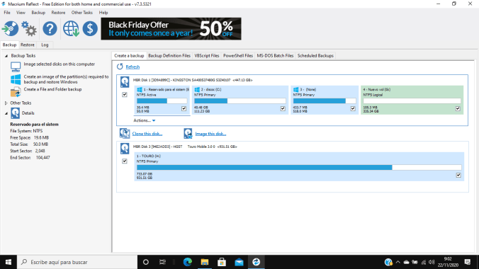 Macrium Reflect Free Edition se presenta como una de las utilidades de clonación de discos más rápidas disponibles. Esta solución de clonación sólo es compatible con los sistemas de archivos de Windows, pero lo hace bastante bien y tiene una interfaz de usuario muy amigable. Tambien Macrium Reflect 7,pone a nuestra disposición una versión gratuita enfocada en el proceso de clonación, pero aparte permite también programar copias de seguridad, entre otras funciones.