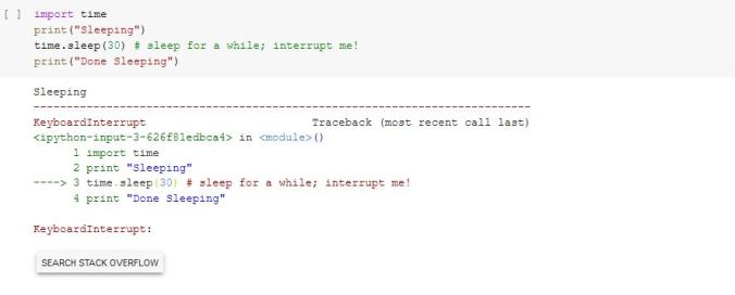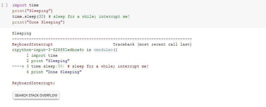 Las excepciones están bien formateadas en las salidas de Colab: