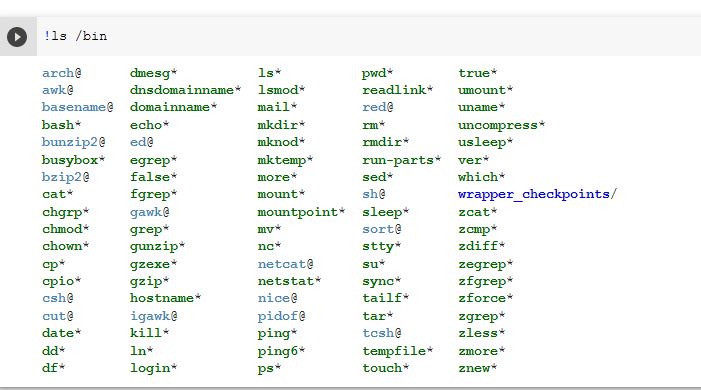 Alias del sistema Jupyter incluye atajos para operaciones comunes, como ls: