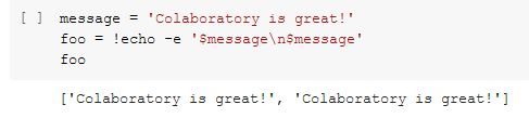 Ejecute cualquier otro proceso usando! con interpolación de cadenas de variables de Python, y tenga en cuenta que el resultado se puede asignar a una variable: