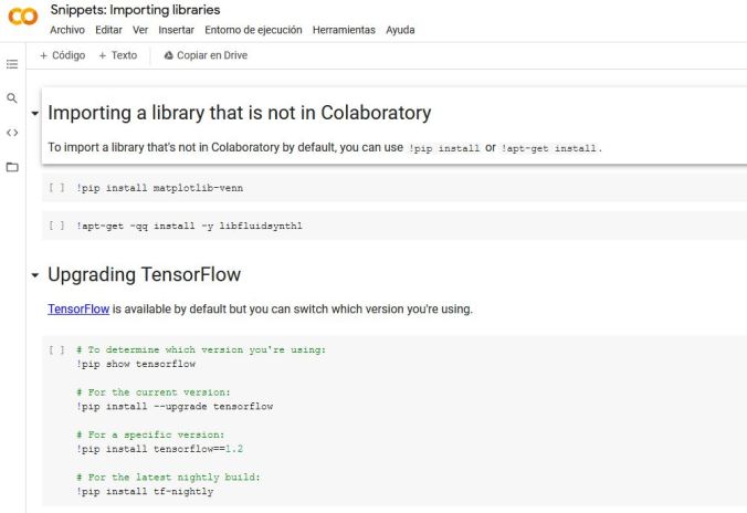 Por cierto , toda esta informacion de este post podemos verla en ingles directamente en los propios notebook gratuitos de Google (observe que la mayoria de los enalces suelen tener extension ipynb tipica de los noetbooks de Jupiter )
