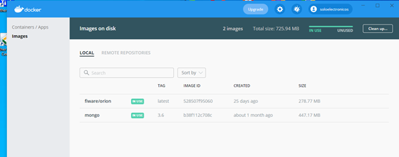 Lo que he hecho con este método es descargar imágenes para Orion Context Broker y MongoDB desde el repositorio público de imágenes llamado Docker Hub: es entonces cuando ha creado dos contenedores basados en ambas imágenes.