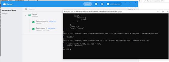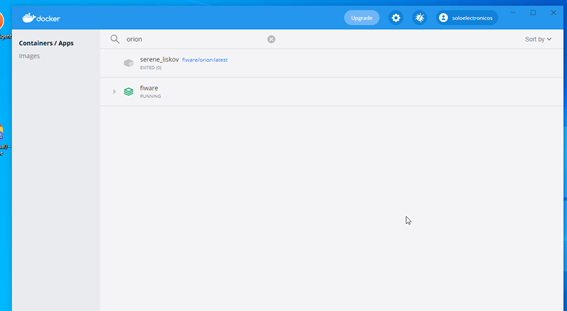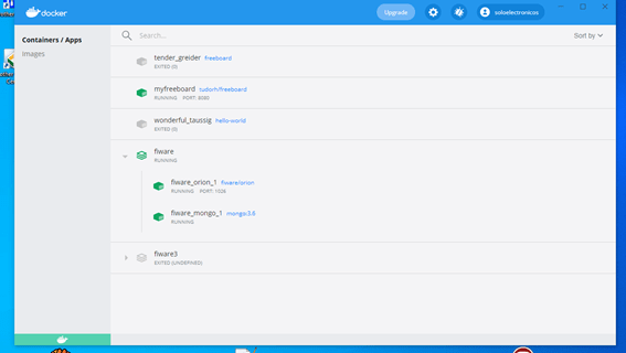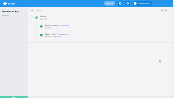 También desde el interfaz gráfico de dockers debe aparecer corriendo el contenedor de fiware ejecutándose: