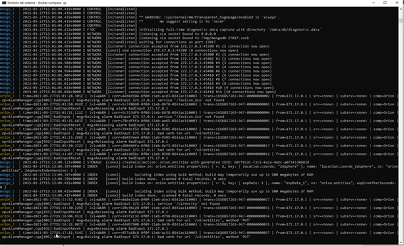 Dado que puede dar problemas en la ejecución de la imagen de docker especialmente al lanzar la imagen de fiware_orion_1 , es mejor desde el directorio de despliegue lanzar el siguiente comando: