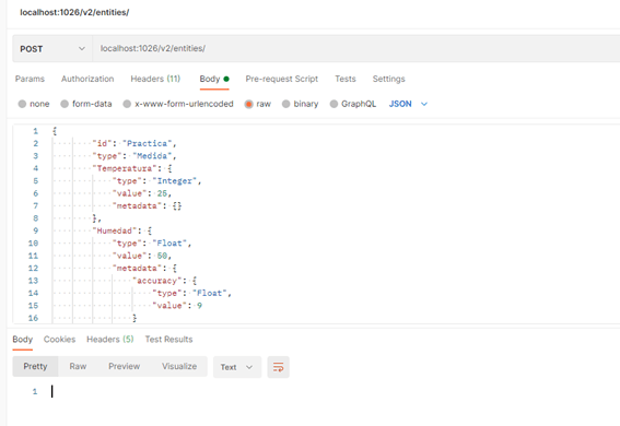 - En URL podremos el endpoint de fiware : http://localhost:1026/v2/entities/