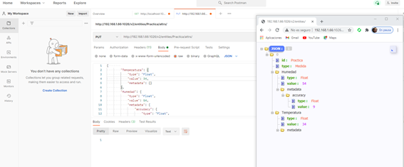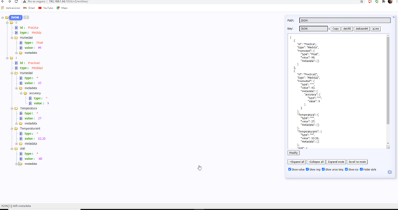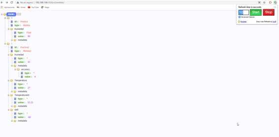 -Desde un navegador Chrome con las extensiones json y refresh nos iremos a http://192.168.1.66:1026/v2/entities/ podemos comprobar que se ha actualizado