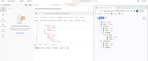 Es precisamente este el formato que podríamos usar para enviar las muestras al Content-bróker de Fiware desde el endpoint http://192.168.1.66:1026/v2/entities/