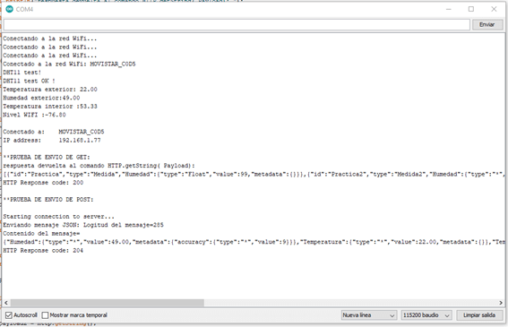 Podemos comprobar que la información es actualizada con la fuente de datos, usando el monitor serie de Arduino: