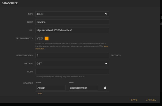 - Lo más importante es configurar antes de nada el Datasource que es de desde donde se obtendrá toda la información que se mostrará en el dashboard.