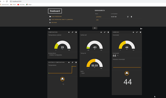 Asimismo, Freeboard permite añadir un histórico usando el tipo Sparkline.