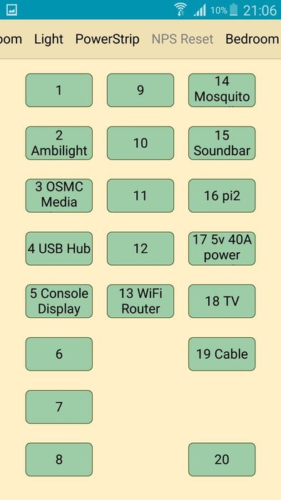 Una vez que la aplicación está diseñada, la aplicación NetIO debe descargarse a su teléfono inteligente. Tenga en cuenta que esta es una aplicación de pago, pero no cuesta mucho. Cada vez que se presiona un botón / interruptor / control deslizante en la aplicación, enviará un mensaje a través de los sockets al cuadro Rpi que se está ejecutando en el nodo rojo. La aplicación de nodo rojo procesará los mensajes y luego enviará mensajes MQTT a la placa de la regleta de alimentación de IoT.