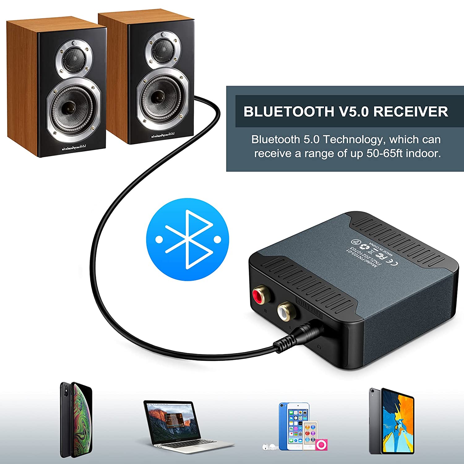 - Receptor Bluetooth 5.0 con antena: adopta la última tecnología de transmisión sin pérdidas de la versión 5.0 de Bluetooth y la antena dedicada de Bluetooth para una transmisión de señal estable. Mantenga presionado el botón de modo durante 3 segundos para usar el emparejamiento Bluetooth con dispositivos móviles para el transporte de audio, como teléfonos móviles, tabletas.