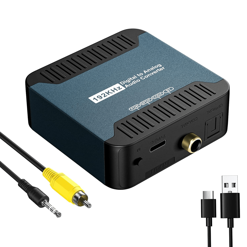 - Convertidor DAC actualizado: este convertidor Digital a Analógico está diseñado para señales de audio profesionales, puede convertir fácilmente la interfaz coaxial o toslink en una interfaz de audio analógica L / R RCA y un conector de audio de 3,5 mm. Perfecto para los dispositivos que carecen de salidas L / R RCA o jack de 3,5 mm.