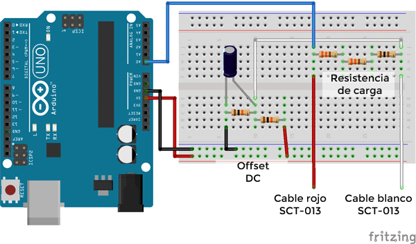 Para conectar un sensor CT a un Arduino, la señal de salida del sensor CT debe acondicionarse para que cumpla con los requisitos de entrada de las entradas analógicas Arduino, es decir, un  voltaje positivo entre 0 V y el voltaje de referencia ADC.