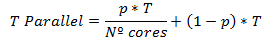 Como solo podemos dividir la parte paralela entre los núcleos de nuestra máquina, el tiempo T Parallel es similar a la fórmula anterior, excepto que la parte paralela aparece dividida por la cantidad de núcleos que tenemos disponibles.
