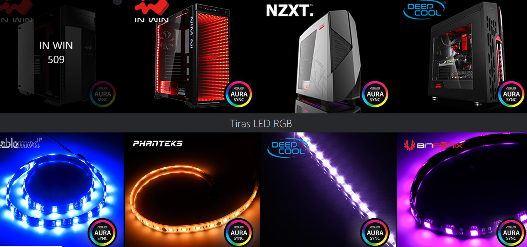 ASUS Aura Sync lleva la iluminación RGB más allá, combinando el control de los LEDs en todos sus dispositivos compatibles para lograr la sincronización perfecta con tu armonía y tu gusto. Desde las tarjetas madre, pasando por las tiras LED y terminando en las tarjetas de video. La sincronización está habilitada y controlada por las tarjetas madre Aura-ready.